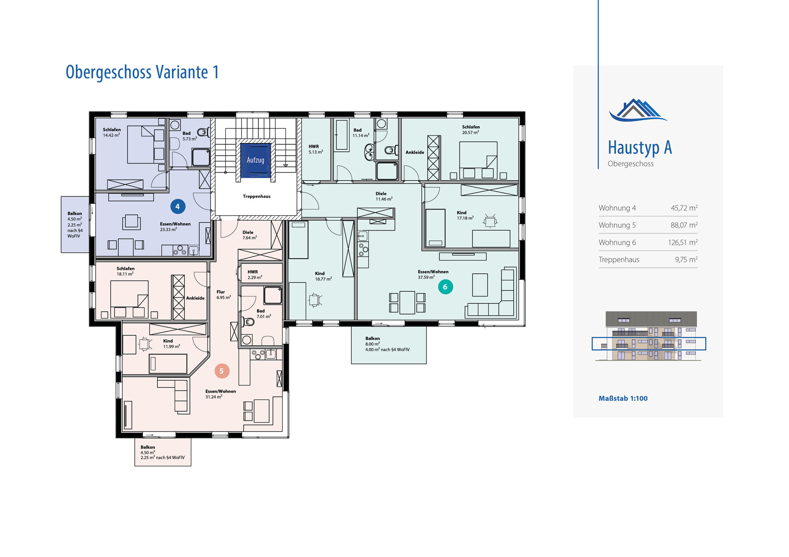 Neubauwohnung mit Balkon, Tiefgaragenstellplatz und Kellerraum-ca. 126 m²-Haus A5, Wohnung 6